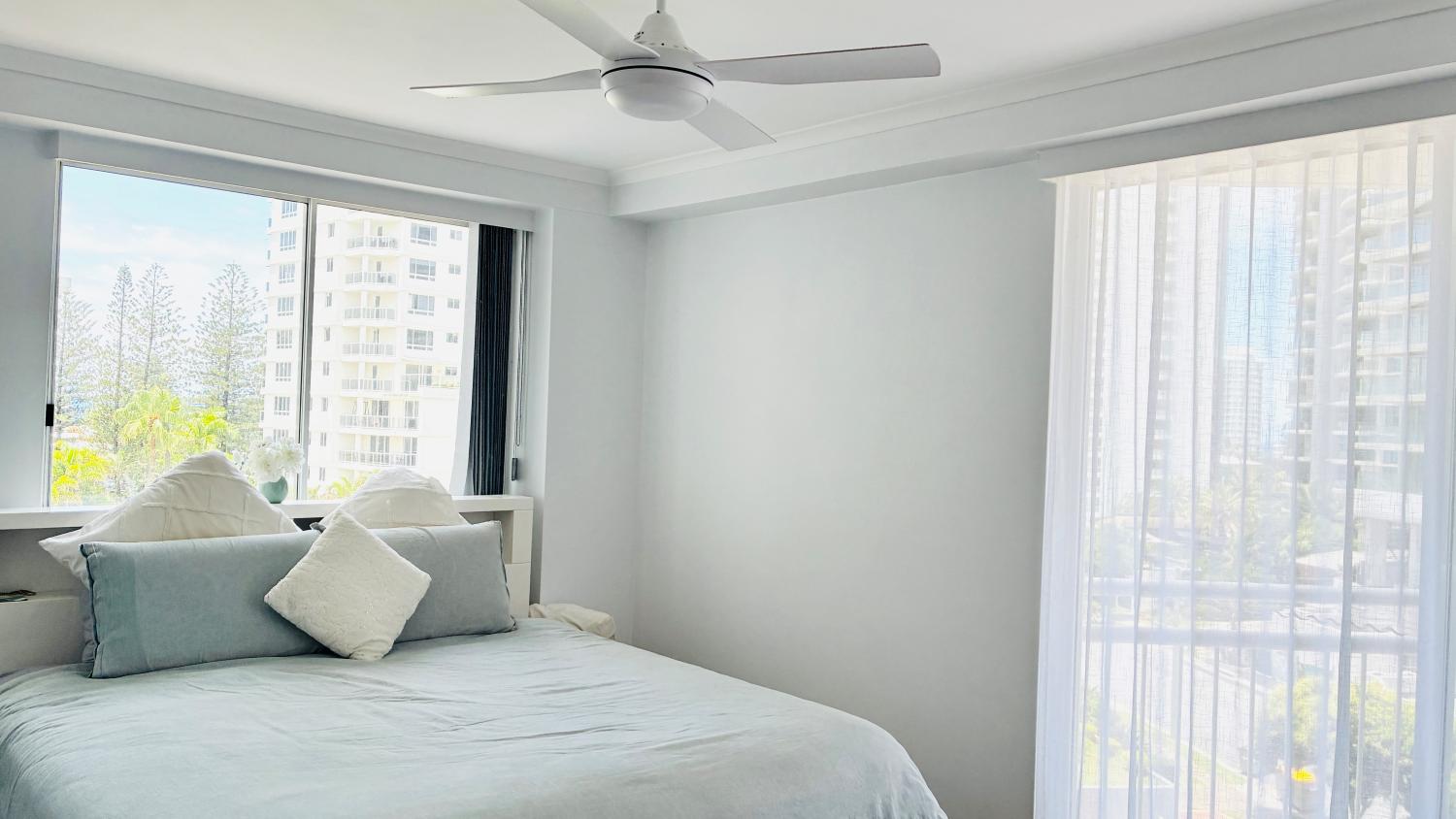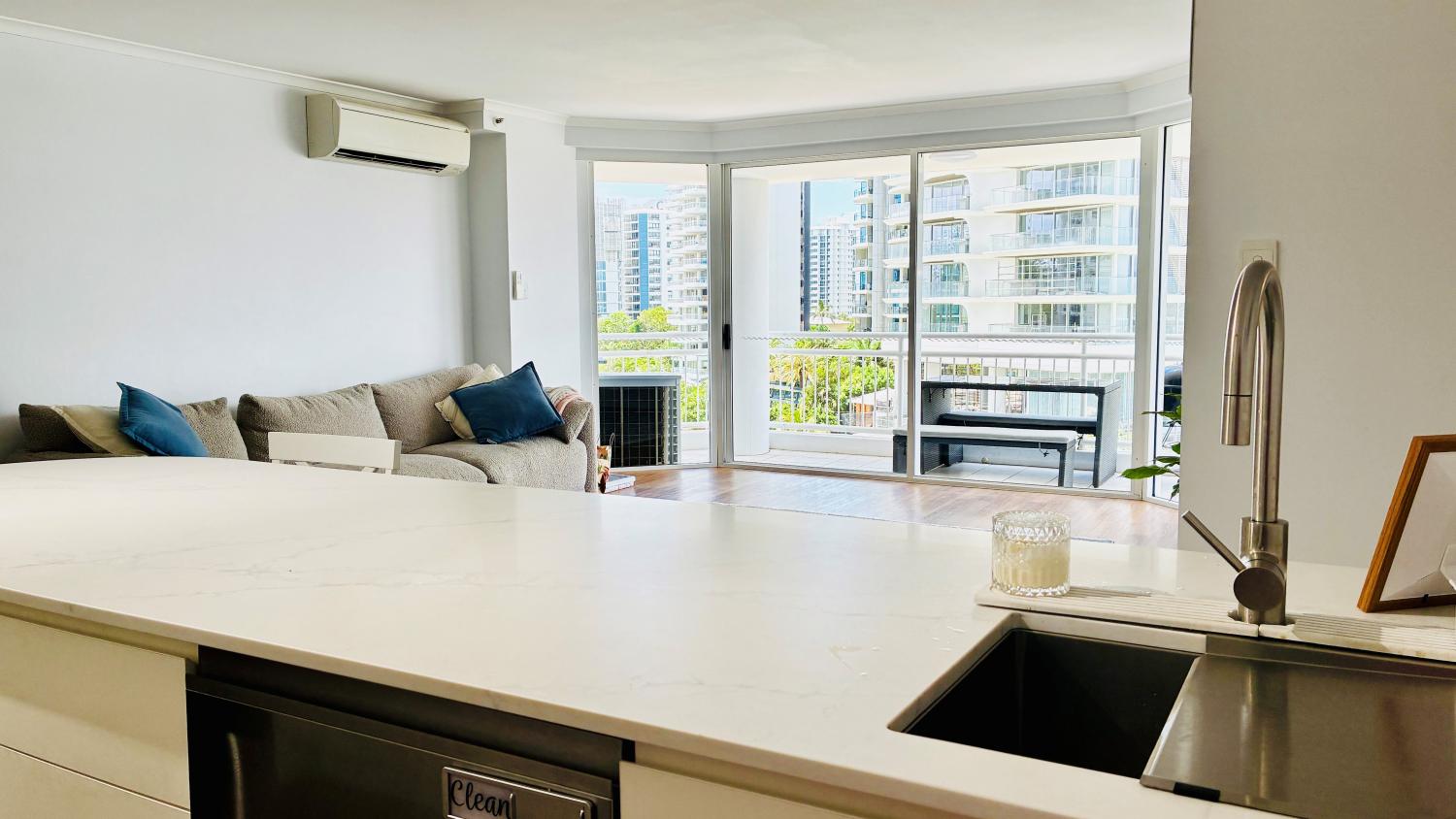 The Apartment: Furnished + Level 4 + internally 150sqm + 30sqm balcony + natural light in abundance + stone throughout all bathrooms and kitchen + shutters are being installed soon and master + aircon + main bedroom + walk-in wardrobe + king size bed in main and second bedroom + double in third bedroom + bath in the ensuite + Large tv in the Lounge room and two + views of Nerang river, Hinterland and ocean + second bedroom has built-in wardrobe + access to the balcony + third bedroom can also be used as an office and has a built in desk + kitchen has stone bench tops and dishwasher + large living area surrounded by balconies + those views! + watch the sunsets from your balcony as you relax and reflect on another beautiful day in Main Beach.